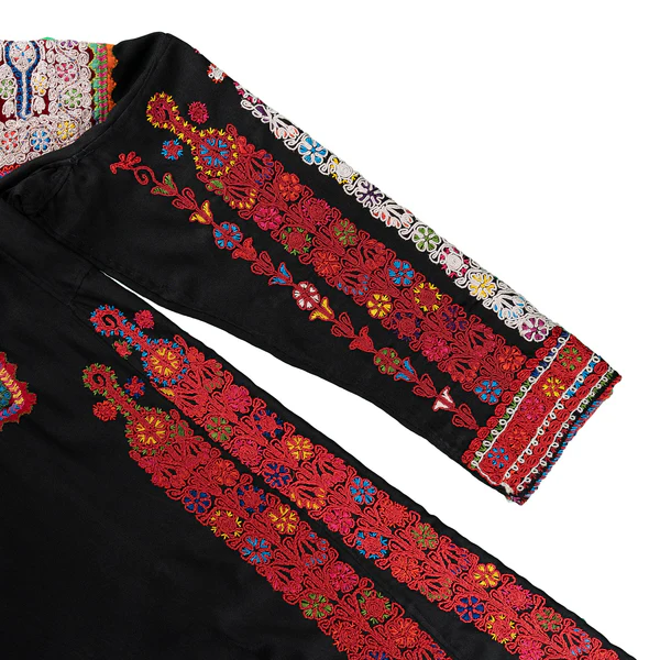 يُعدّ ثوب التحريرة الأسود أحد أبرز الأثواب التراثية في منطقة القدس وقراها، مثل لفتا، شعفاط، أبو ديس، عين كارم، والمالحة، حيث يجسّد هذا الثوب هوية ثقافية غنية تمتزج فيها الحِرفية العالية بالرمزية التاريخية العميقة. يتميّز هذا الثوب بطابعه الأنيق والفاخر، ويعكس في تفاصيله الدقيقة تداخل التأثيرات الفنية بين القدس وبيت لحم، ما يمنحه خصوصية فريدة تجمع بين الأصالة والتنوع. ولا يُعتبر هذا الثوب مجرد زي تقليدي، بل هو تعبير بصري عن تاريخ المنطقة، ومرآة تعكس روح المجتمع المقدسي وعلاقته بالأرض والتراث.