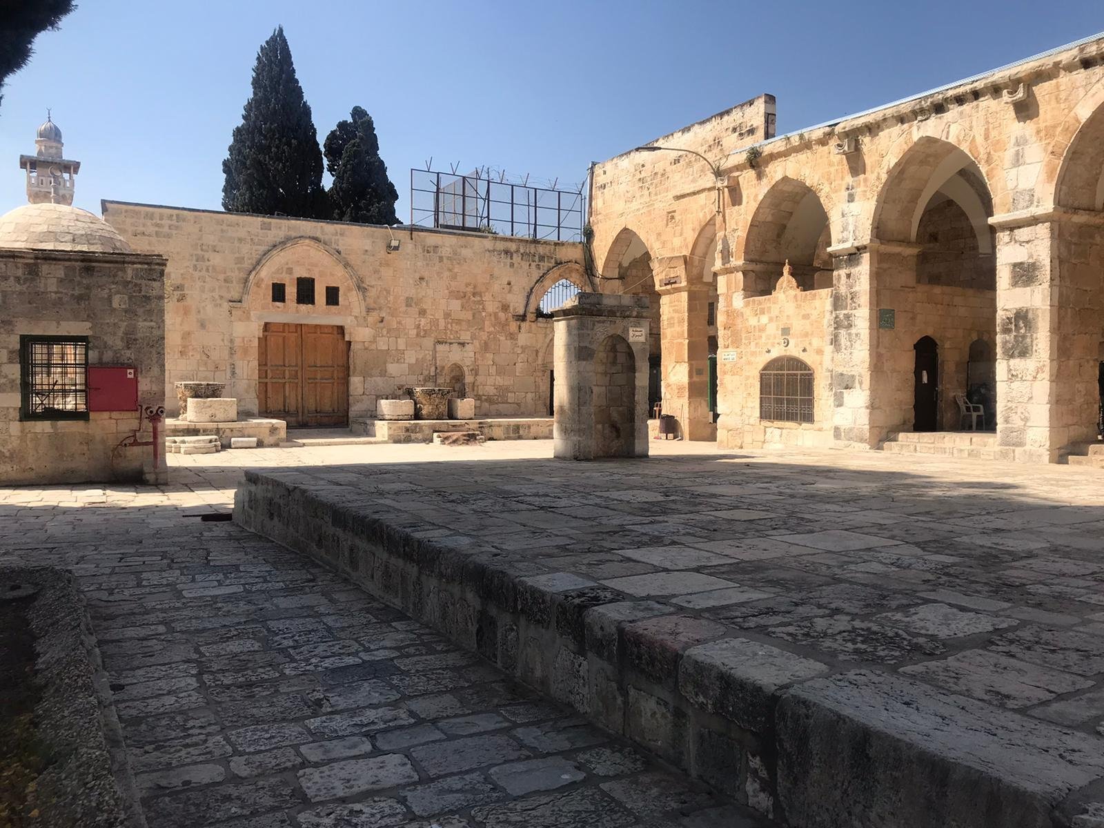 الوضع الحالي: يعاني المصلى من رطوبة شديدة وتشققات، ويشهد تواجداً مستمراً لقوات الاحتلال عند مدخله، مما يعيق وصول المصلين، ويفتح عادةً في أوقات محددة.